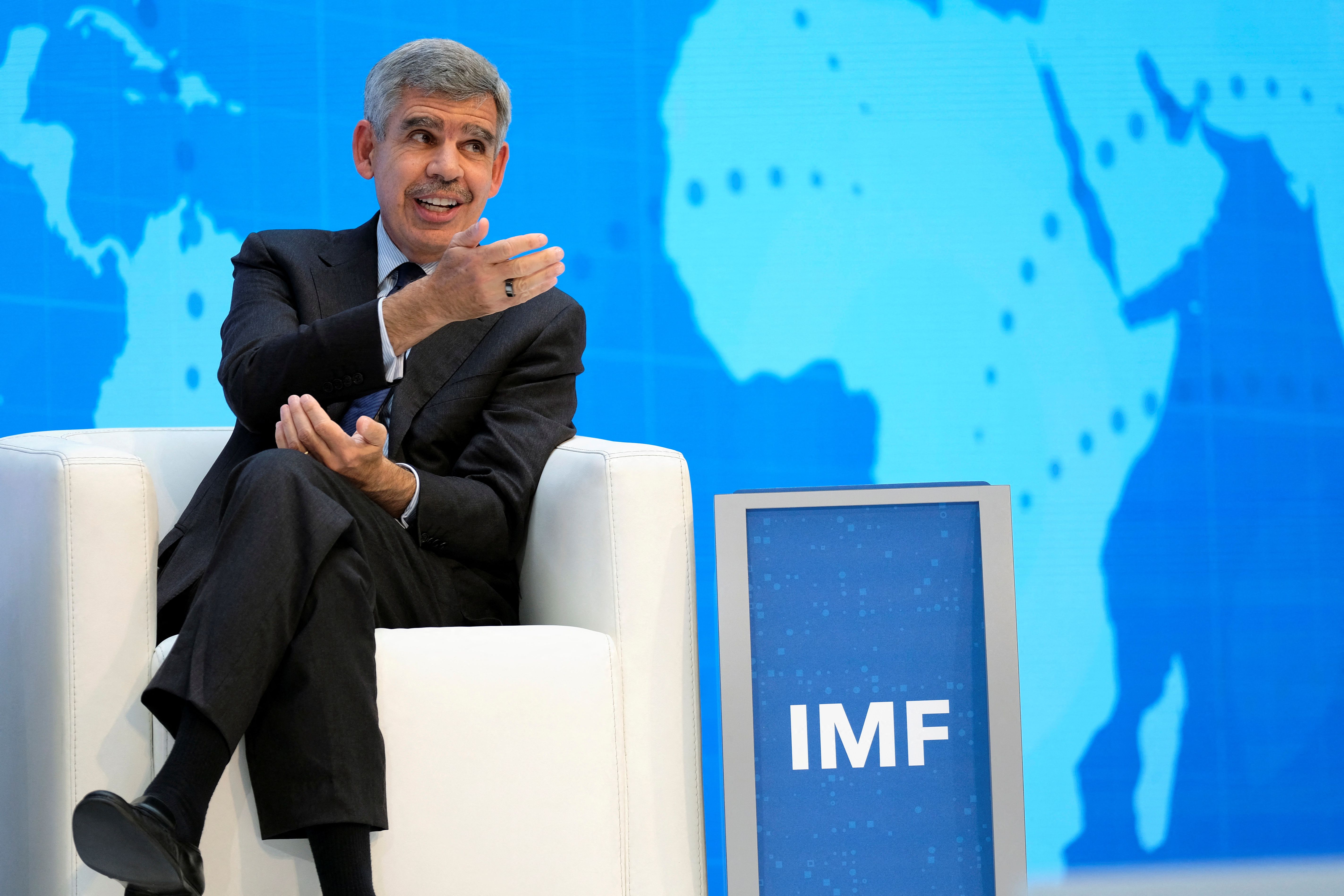 2022年10月13日,穆罕默德·埃里安在美国华盛顿举行的国际货币基金组织和世界银行年会期间发表讲话。(路透社)