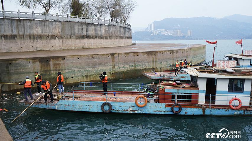 “主要是泡沫和上游山里面冲出来的树枝。”队员们说,冬季没有洪水,加上每天巡查及时打捞,江面的垃圾相比夏季要少很多。在逗号码头附近,因为江水回流,一些枯枝和生活垃圾汇聚在江面,队员们立刻挥动捞网忙碌起来,动作娴熟而麻利,江面垃圾很快被清理一空。看起来好像并不难,一根三米多长的树枝,经过江水长期浸泡,足有约60斤重,跟船的记者尝试奋力打捞,树枝在江面随波逐流,几经尝试,都以失败告终。在队员的协助下,约五分钟,才勉强把树枝打捞上岸,放下网子,顿觉手臂酸软。“船在摇,垃圾在漂,要眼快手快,才能捞得住!”队员陈平说,遇到很重的木头,需要两三个人合力才能打捞上船。