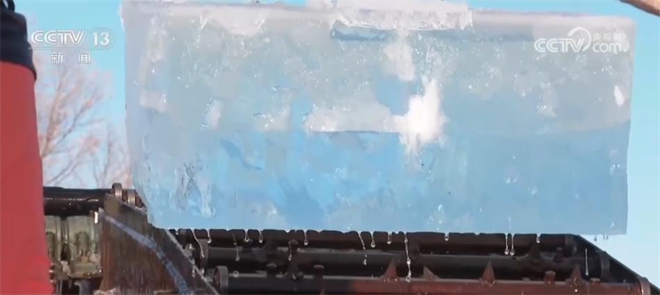 看冰灯、玩超长冰滑梯、和万人在冰天雪地热舞,眼下的哈尔滨冰雪大世界堪称欢乐的海洋。此时,同样热闹的还有松花江的冰面上,机器轰鸣、冰花飞溅,一块块晶莹剔透的冰被拖出水面,装车送往存冰场。