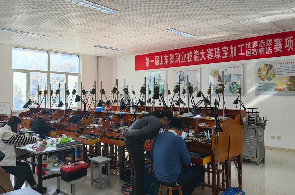 2023年11月29日,山东昌乐技师学院首饰设计与制作专业师生在练习专业技能。新华社记者张力元 摄