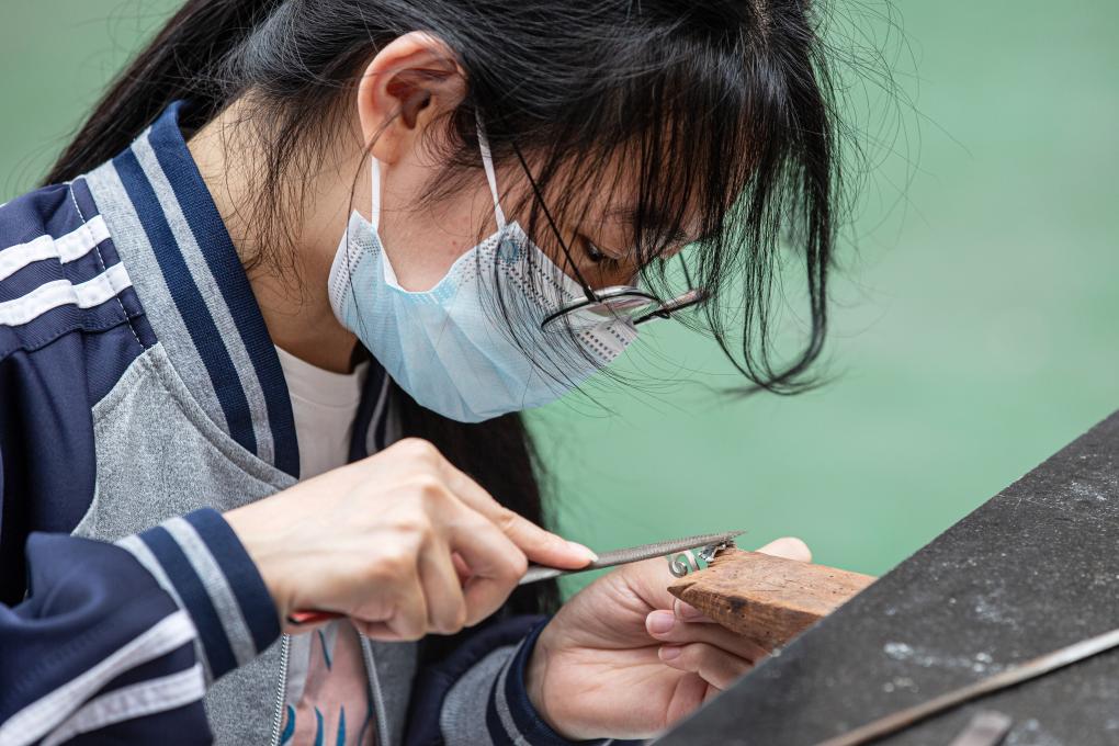 2023年5月19日,以“技能:让生活更美好”为主题的职业技能大赛在福建商贸学校举行,该校学生在进行珠宝设计制作比赛。新华社记者姜克红 摄