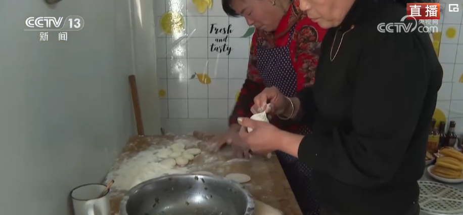 村广场上人潮澎湃,非常热闹场景,也不是每个人都能加入其中或者来围观。因为按照今天的当地风俗,每家每户都要包包子,就比如我旁边的这家,大伙正在热火朝天地各自分工,擀皮儿的、揪面剂子的、包馅儿的,大家都是联起手来一起做。