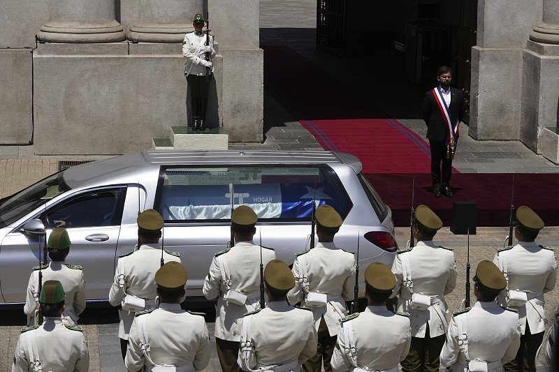 当地时间2月9日,智利政府在首都圣地亚哥为前总统皮涅拉举行国葬仪式。