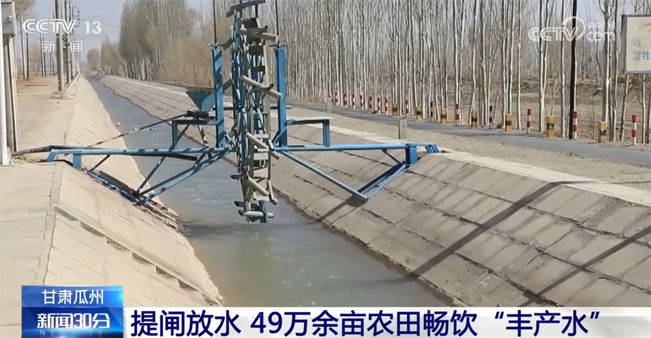 在甘肃瓜州,随着疏勒河流域灌区引水闸闸口开启,各灌区陆续提闸放水,让49万余亩农田按时足量喝上开春“丰产水”。
