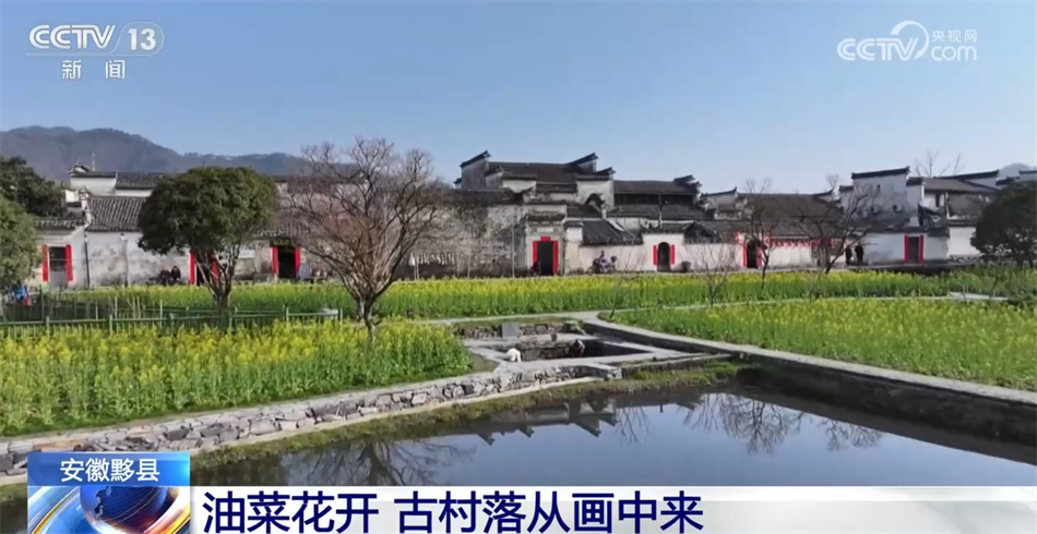 阳春三月,安徽黟县西递古村落的油菜花竞相开放,金黄的油菜花与粉墙黛瓦的古建筑、秀美的青山绿水相互映衬,好似一幅精美的画卷。如诗如画的美景吸引着游客们纷纷驻足观赏,他们沉浸在美丽的花海之中,细嗅着油菜花的芬芳,感受着春天的气息。