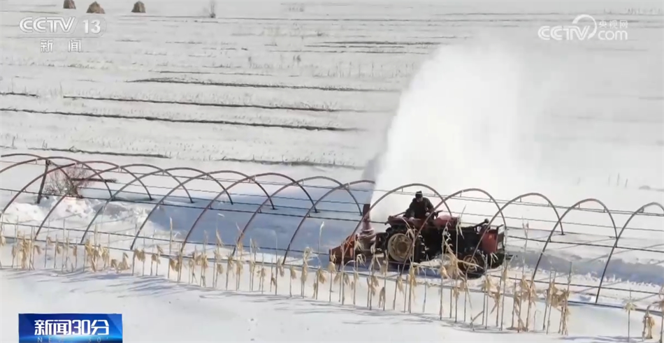 在黑龙江哈尔滨市延寿县,种植户正在抢抓天气回暖有利时机开展清雪扣棚工作。