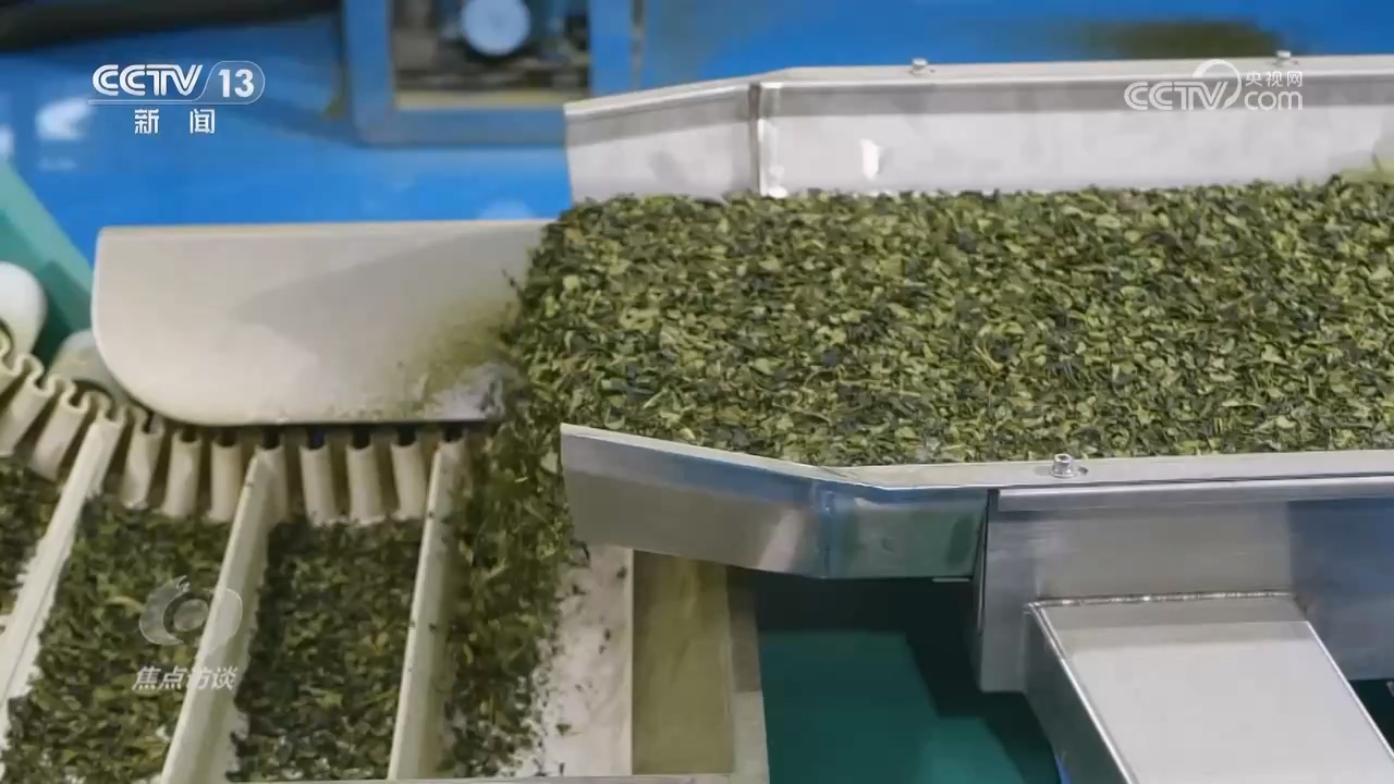经过多年的调试研发,这条生产线已经获得了13项技术专利,由茶青做成的碾茶在送入车间前,要先经过500多项农药残留指标的全自动、智能化检测,检测合格的碾茶才能进入精深加工线进行加工。