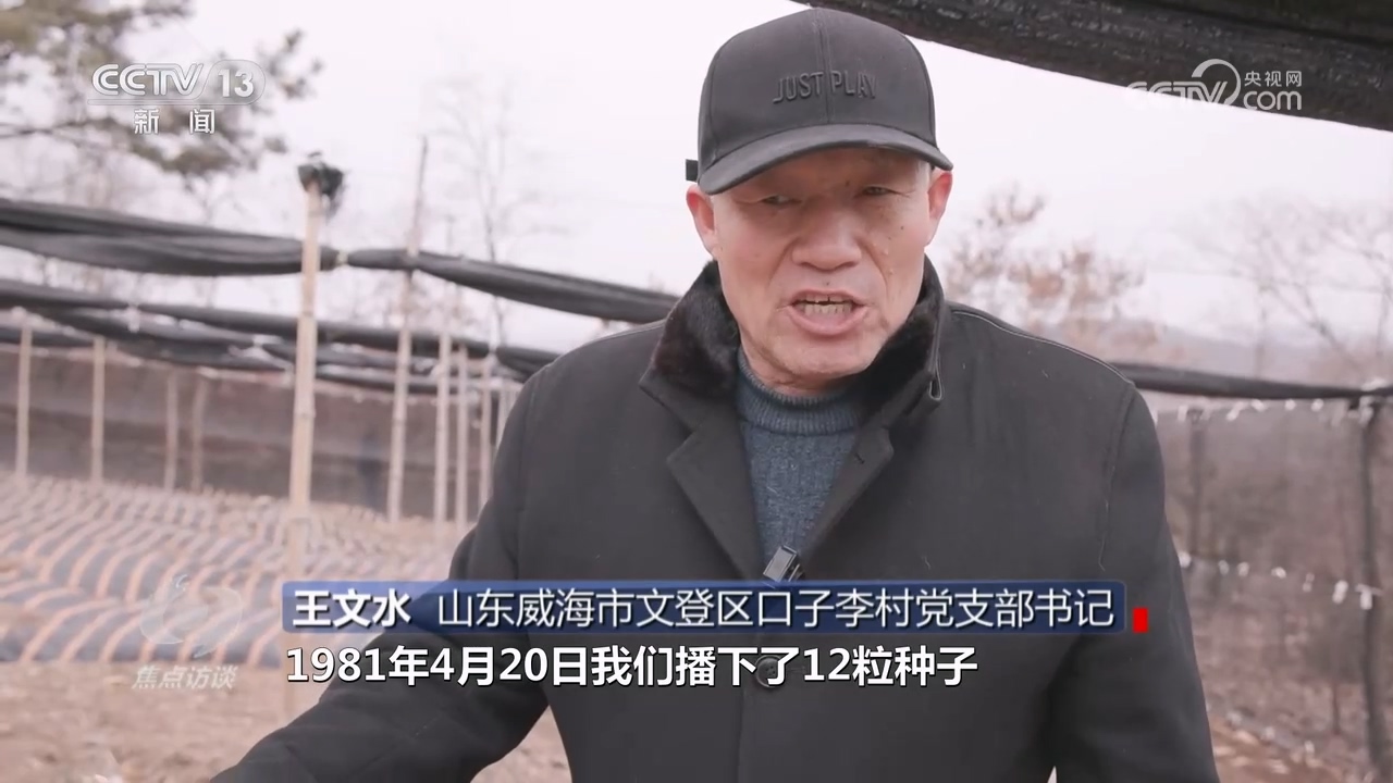 山东威海市文登区口子李村党支部书记王文水:“我们24小时在这里看守着,观察记录它的温度,1981年4月20日播下了12粒种子,在1981年5月20日长出8棵苗。当时西洋参的价格特别昂贵,从外面买过来的西洋参干品是几千块钱一公斤,我们觉得这是发家致富的好项目。”