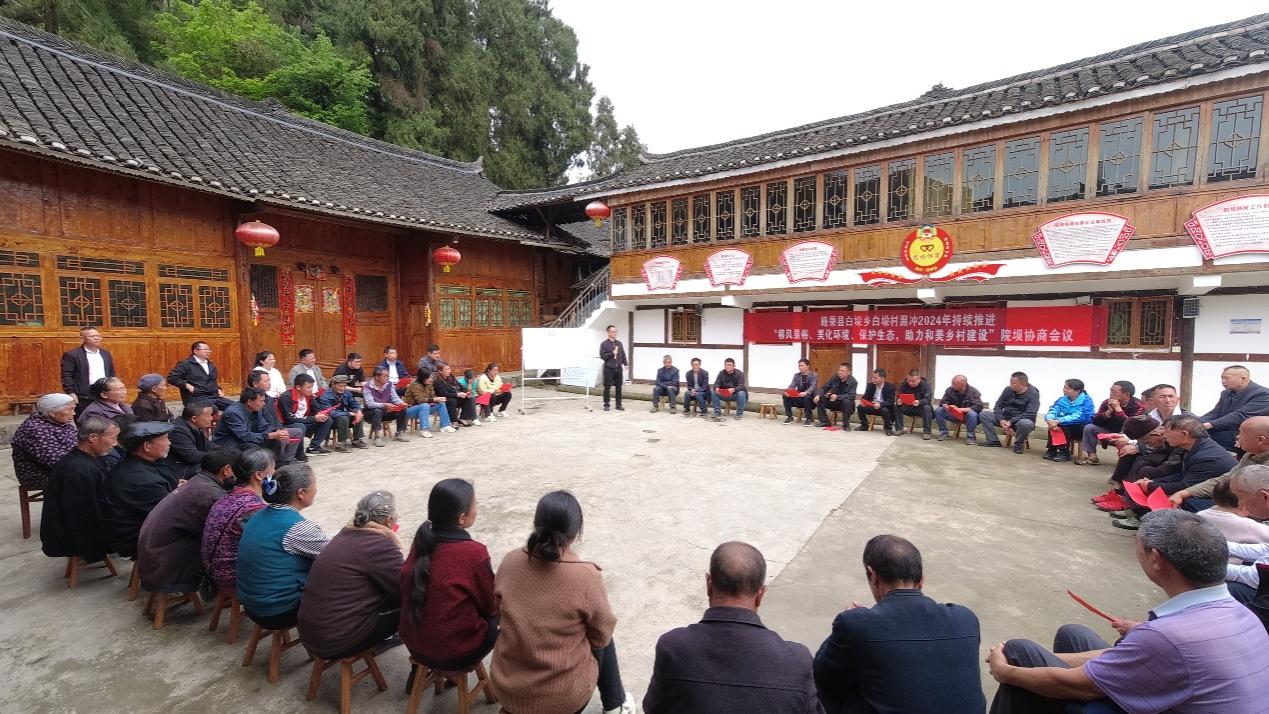 在贵州省黔东南苗族侗族自治州施秉县白垛乡白垛村,一场关于移风易俗、美化环境、保护生态、助力和美乡村建议的院坝协商会正在举行。随着议程推进,村民们的问题也纷至沓来:“关于这个宅基地建房我想问一下……”“现在这个‘四禁四要’很好,但我们收获之后这个秸秆还能不能烧?”