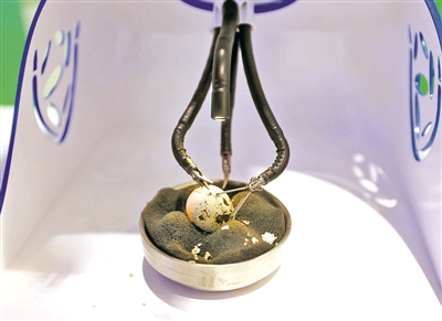 在本次展出中,可以“手剥”生鹌鹑蛋壳的腹腔内窥镜单孔手术系统备受关注。现场工作人员套上类似手套的设备,就能操作远端的机械臂来剥开生鹌鹑蛋的蛋壳,还不会弄坏靠近蛋壳内壁的软膜。“这套系统我们有600多项专利,其中靠人工智能和算法,让设备过滤掉了医生在操作过程中手指可能出现的、生理性的自然抖动,或者前端操纵臂的一些弯曲带来的影响,增加了设备在手术过程中的稳定性。”