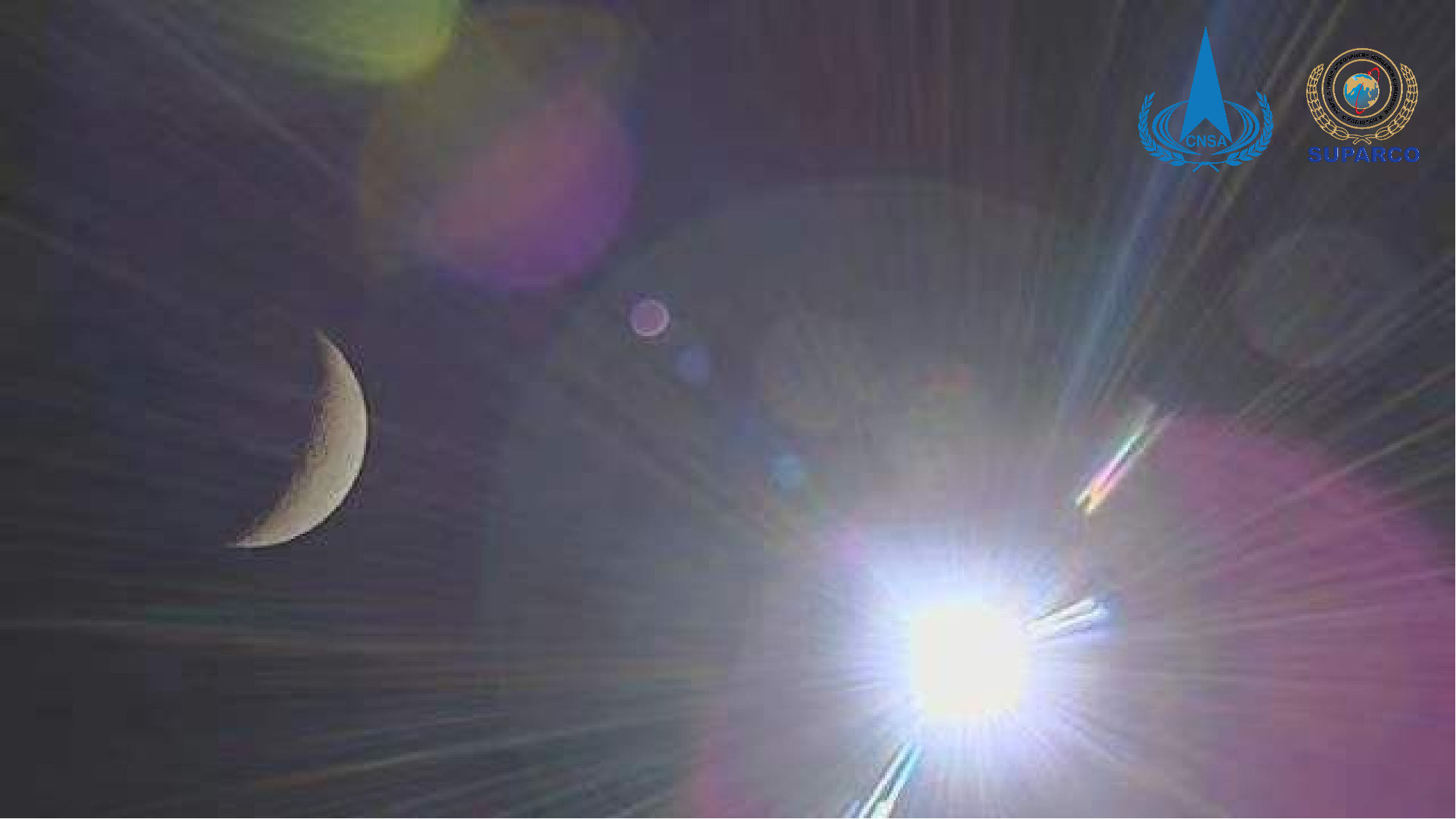 2024年5月9日14:38,巴基斯坦立方星拍摄的日月合影,左侧为月球,右侧为太阳。