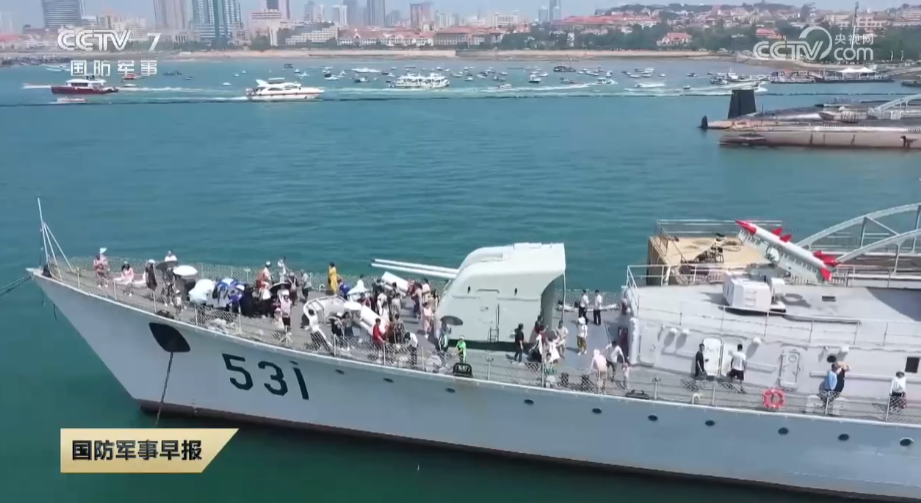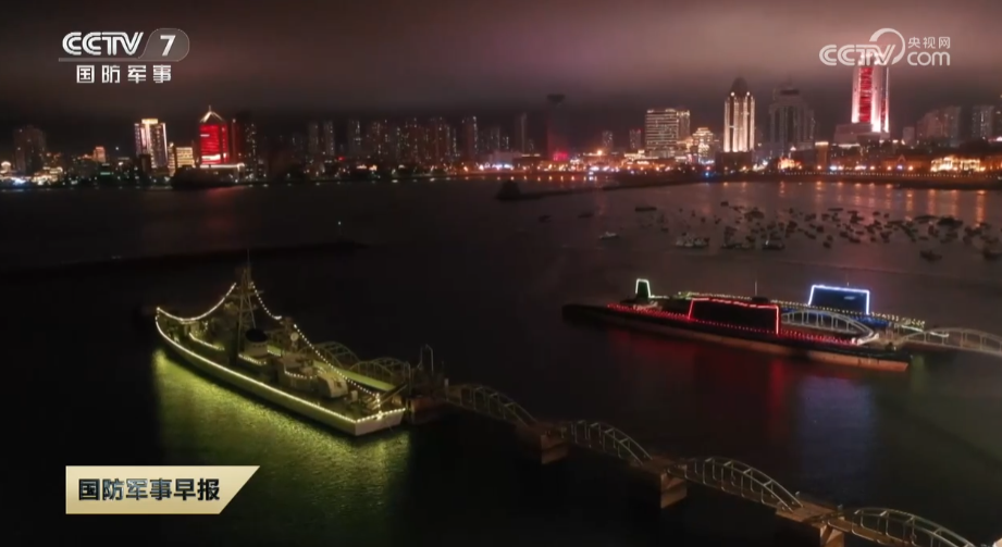 记者 王晶宇:来到海军博物馆就一定不能错过室外展,在海上展区的3座码头6个泊位上停靠着第一艘国产驱逐舰、第一艘国产核潜艇等具有标志性意义的功勋舰艇。最近,海军博物馆还延长了开放时间。夜晚,所有舰艇都会点亮满灯。海浪摇曳、光影浮动,独特的军港美景也在观众心中留下深深的海军记忆。