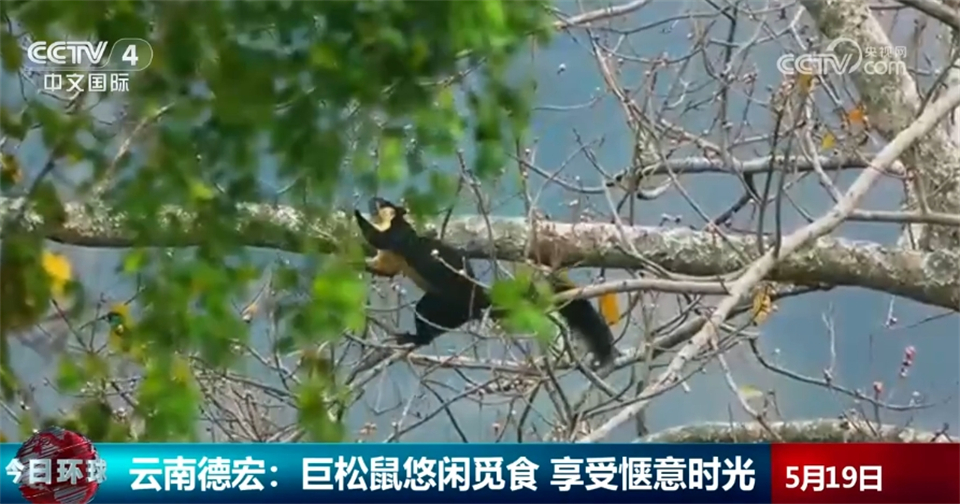云南德宏:巨松鼠悠闲觅食 享受惬意时光