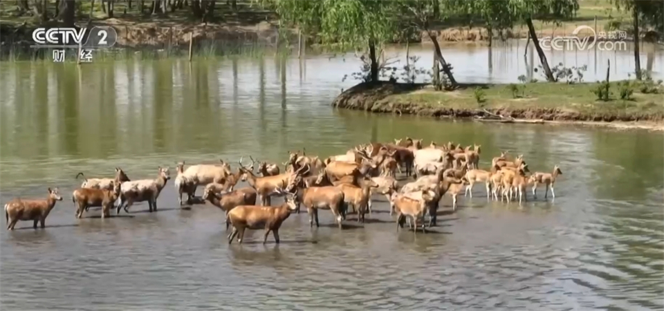 走进江苏省大丰麋鹿国家级自然保护区,成群结队的成年麋鹿带着萌态可掬的麋鹿宝宝,或惬意地在池塘里洗澡纳凉,或悠闲地在湿地上休息觅食。