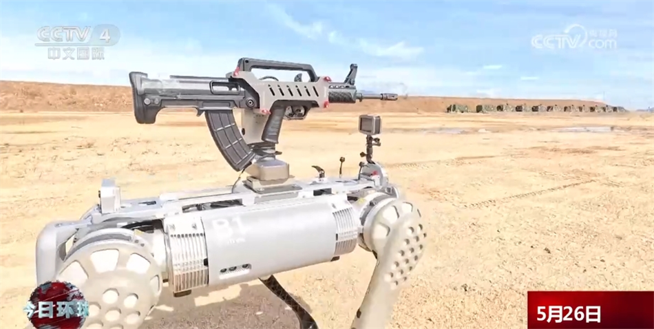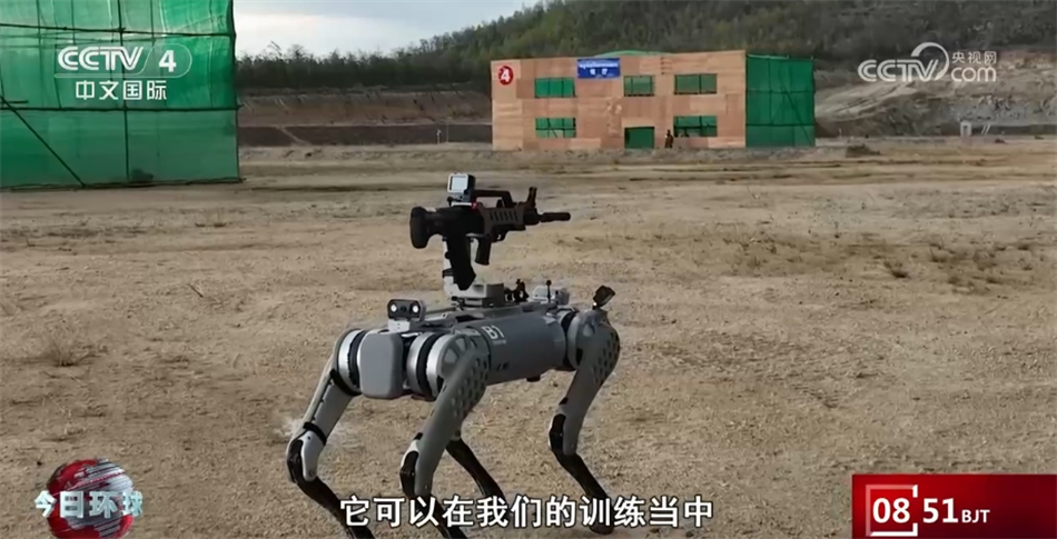 中方参演队员陈威介绍:“我现在操作的是B1四足机器狗,它可以在我们的训练当中代替我们的队员先行进行侦察和发现敌人后火力打击,是我们城市攻防作战中的新成员。”