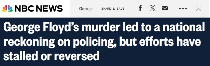 据美国全国广播公司报道,事件发生后,乔文被判谋杀罪名成立,被判处超过22年监禁,另外三名前警员也因参与该案被判处监禁。此后,要求在全美范围内就与种族主义和警察暴力有关的问题进行反思的呼声一波接一波。但在之后数年中,一些旨在改变现状的努力,例如联邦《乔治·弗洛伊德警务公正法案》(George Floyd Justice in Policing Act),却陷入了停滞。在一些州,要求通过刑事司法改革来解决长达数十年的种族差异问题的呼声减弱。