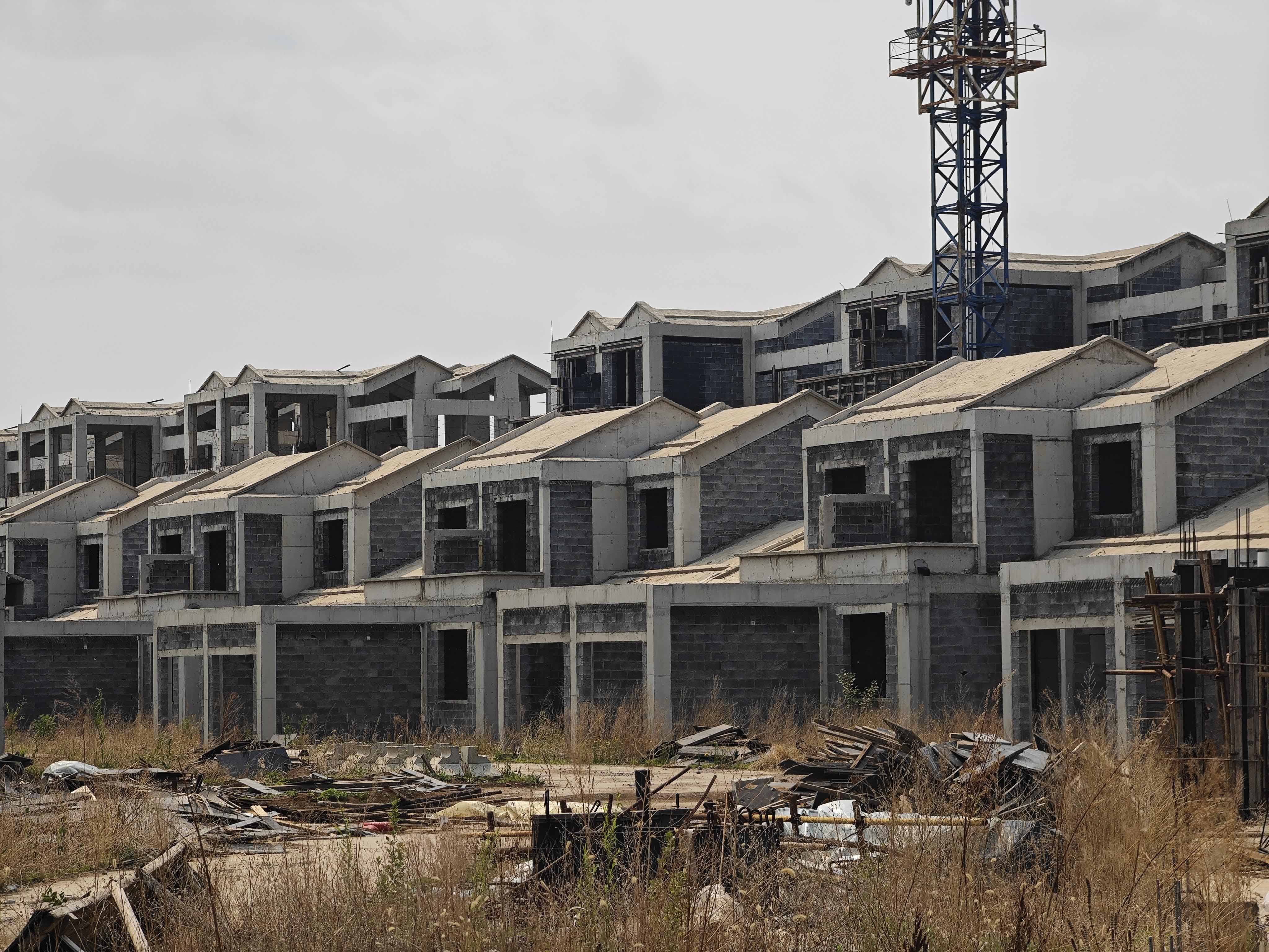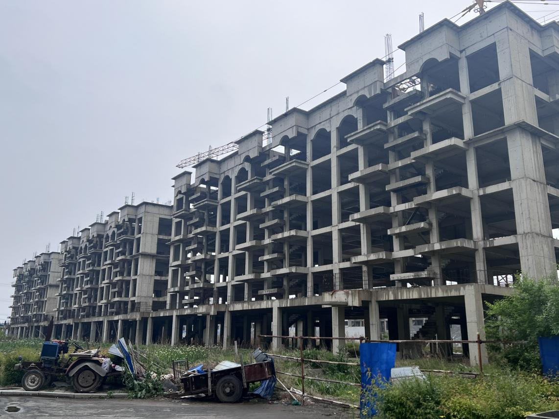桃花源著项目北侧未竣工的村民安置楼(记者管昕摄)