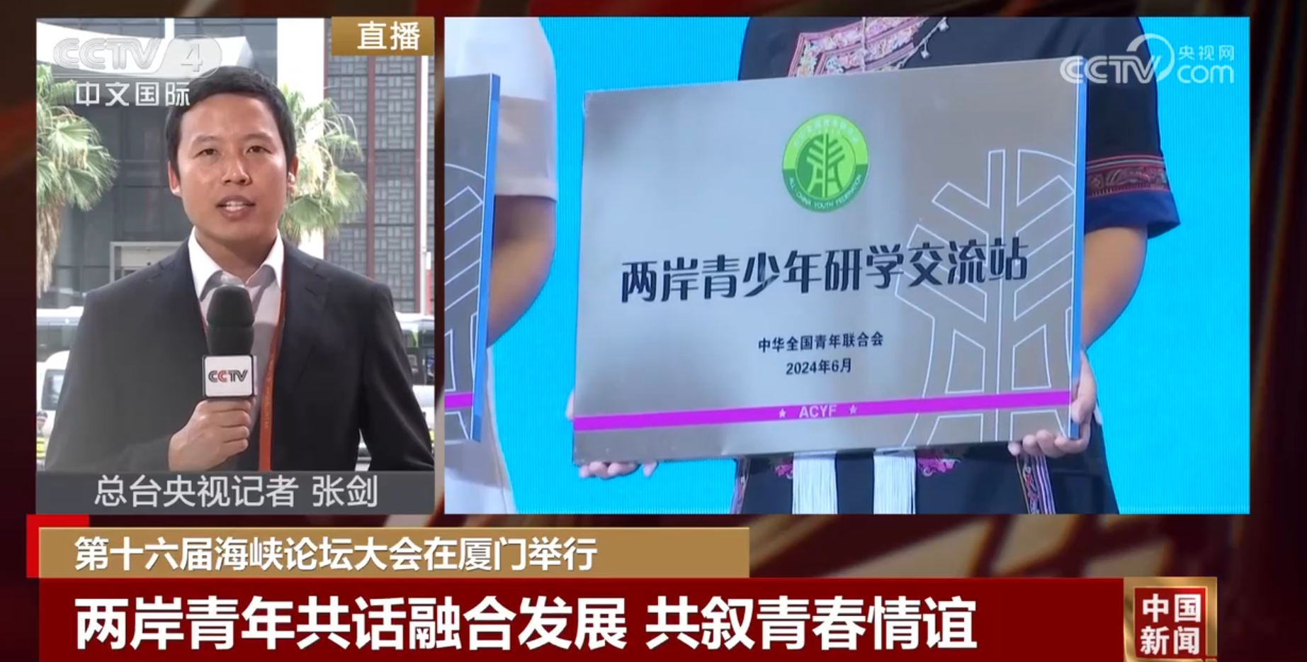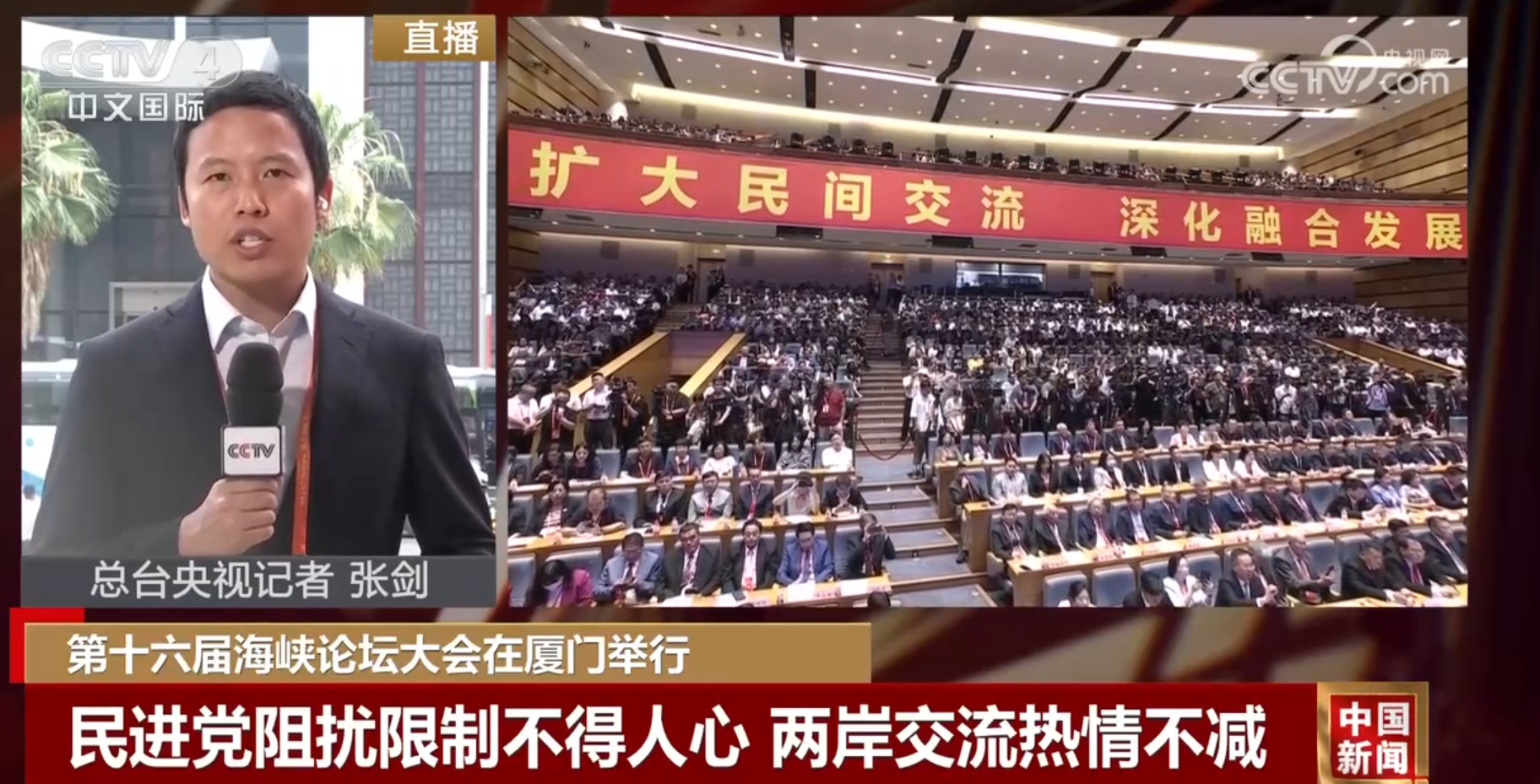 央视网消息:第十六届海峡论坛大会6月15日上午在福建厦门举行。本届论坛继续以“扩大民间交流、深化融合发展”为主题,举办多项活动,促进两岸交流合作。具体情况,我们来连线前方记者张剑。