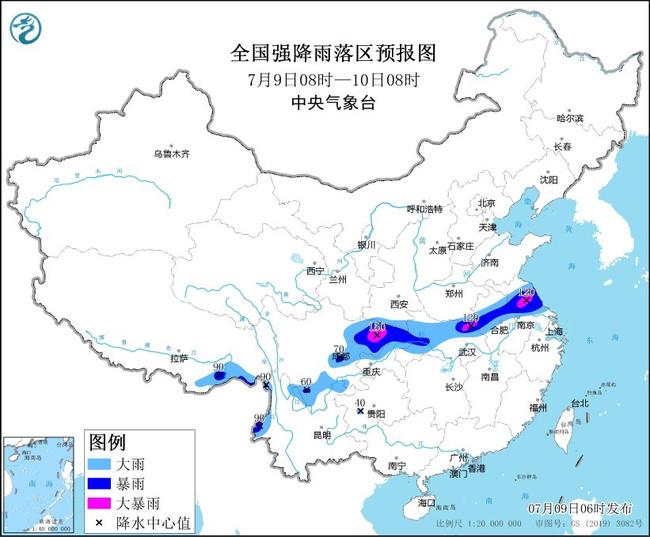 央视网消息:中央气象台7月9日06时发布暴雨黄色预警,预计,7月9日08时至10日08时,陕西南部、四川盆地中北部和西部、湖北西部和东北部、河南东南部、安徽中北部、江苏中部以及云南西北部等地有大到暴雨,其中,四川东北部、湖北东北部、河南东南部、江苏中部等地的部分地区有大暴雨(100~150毫米);上述地区伴有短时强降水(最大小时降雨量30~40毫米,局地可超过60毫米),局地有雷暴大风等强对流天气。