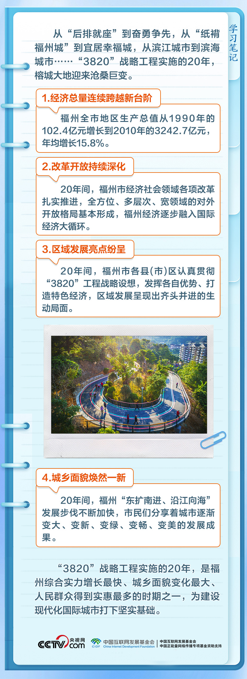 经过充分调研论证,习近平正式提出“3820”战略工程,科学谋划了福州3年、8年、20年的发展目标。
