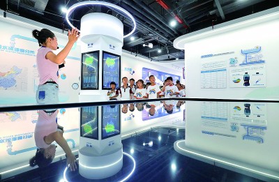 学生在湖南资兴市东江湾城市公园的郴州水世界参加科普研学活动。李科摄/光明图片