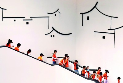 暑假期间,小朋友在江苏苏州市虎丘山景区民俗馆参观。新华社发