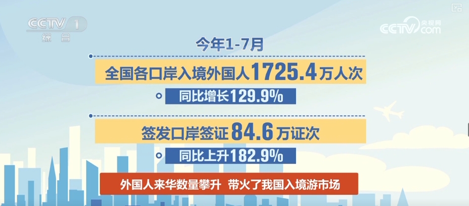 央视网消息:8月19日,国家移民管理局相关负责人介绍,2024年前7个月,全国各口岸入境外国人大幅增加,带动了旅游消费市场。