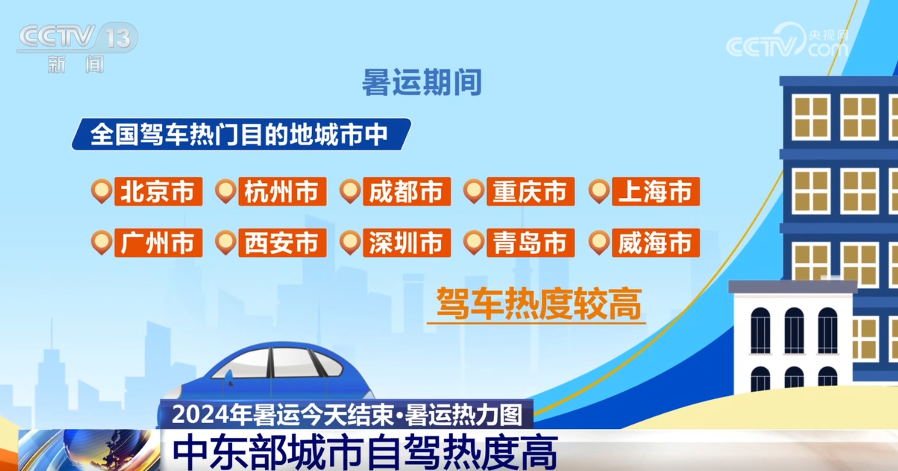 高德交通大数据显示:暑运期间,全国驾车热门目的地城市有北京市、杭州市、成都市、重庆市、上海市、广州市、西安市、深圳市、青岛市、威海市。