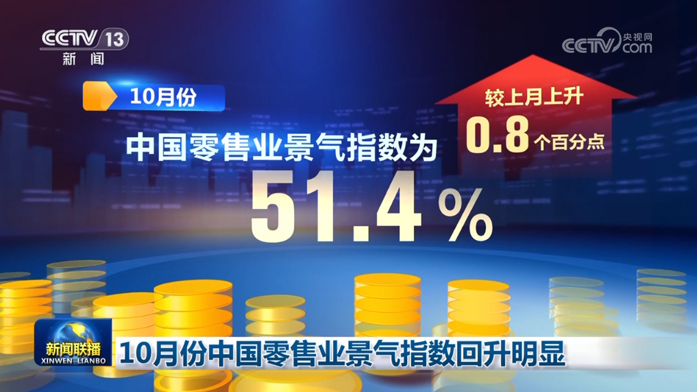 央视网消息:透过数据看经济,通过经济看成就。10月9日的《新闻联播》报道了权威机构发布的最新经济数据:10月份中国零售业景气指数为51.4%,连续两个月呈现较大幅度上升;9月份中国电商物流指数为114.4点,较上月回升0.2点……多组数据勾勒经济发展“活力图景”。另外,我国数字新基建加速建设、国际新航线不断开通,一系列提振经济、坚定信心的利好消息持续公布,多重积极因素不断积聚,推动经济高质量发展“向上向优”。