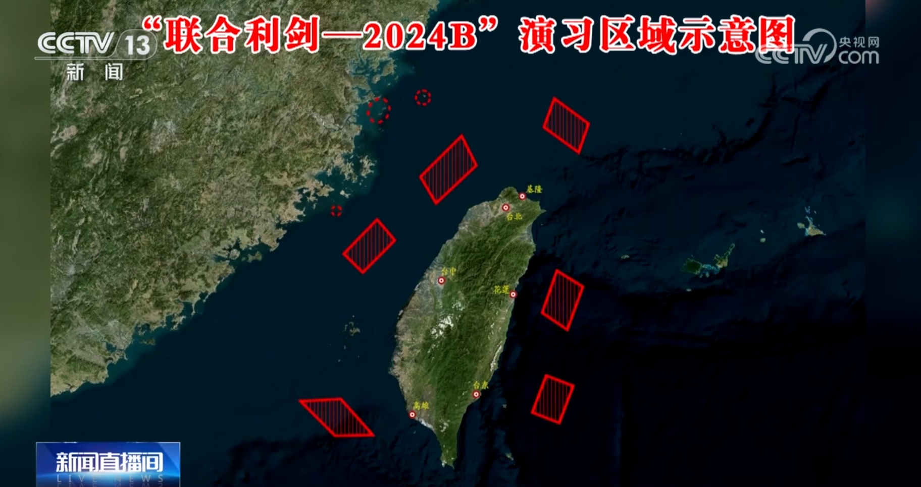央视网消息:东部战区新闻发言人李熹海军大校表示,10月14日,中国人民解放军东部战区组织战区陆军、海军、空军、火箭军等兵力,位台湾海峡、台岛北部、台岛南部、台岛以东,开展“联合利剑—2024B”演习,舰机多向抵近台岛,诸军兵种联合突击,重点演练海空战备警巡、要港要域封控、对海对陆打击、夺取综合制权等科目,检验战区部队联合作战实战能力。