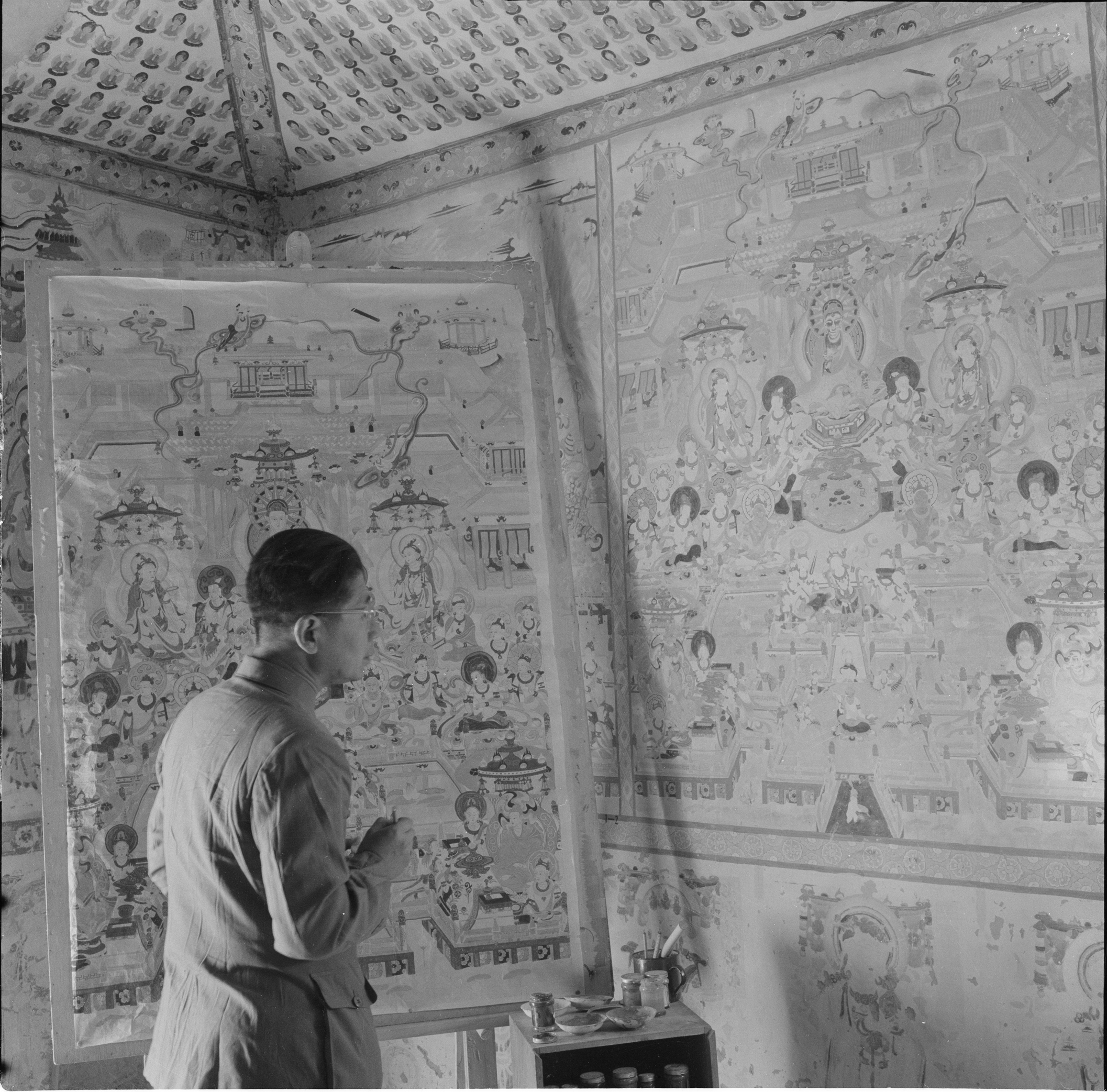 常书鸿临摹经变 中唐 摄录部 1955年10月20日