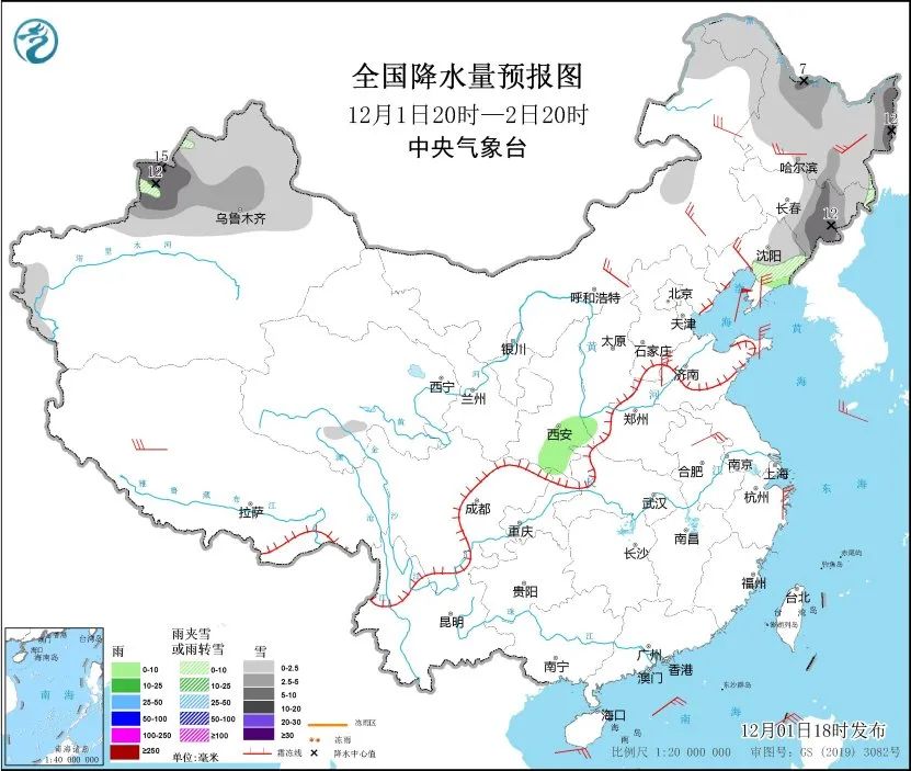 1日夜间至2日,内蒙古东北部、东北地区以及新疆北部和西南部等地有小到中雪或雨夹雪,部分地区有大雪或暴雪。