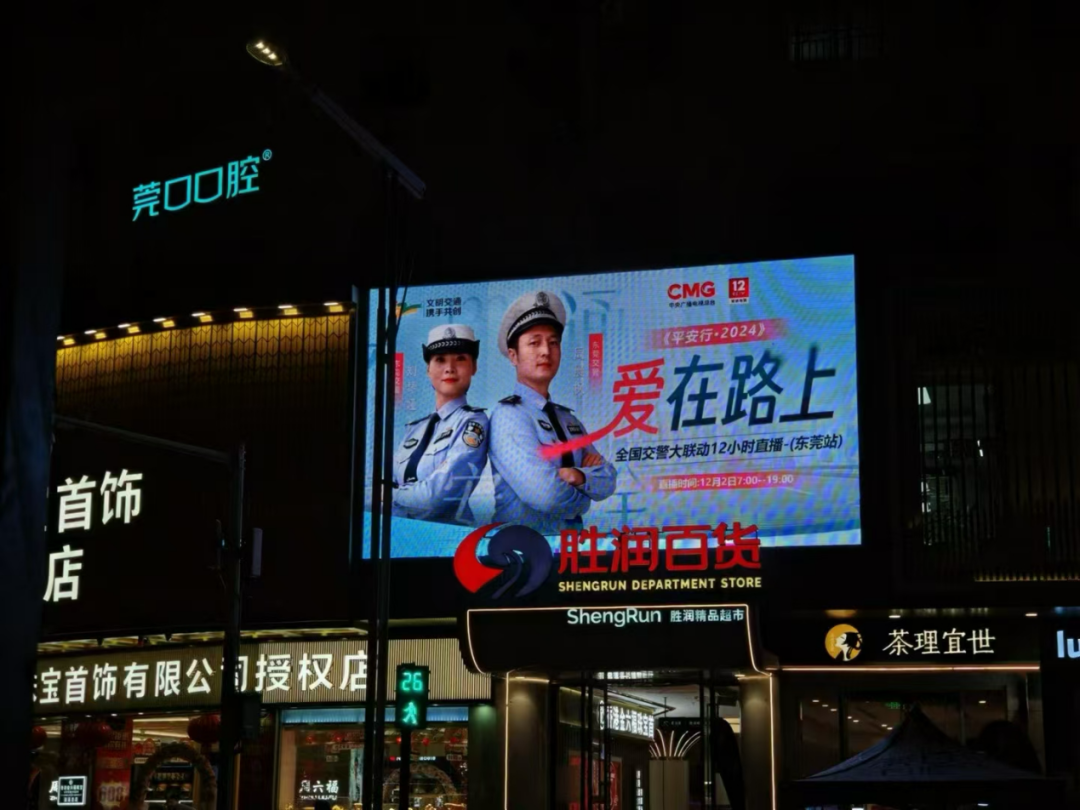 此外,《平安行·2024》在广西南宁、江西萍乡、江西新余、广东东莞、四川德阳等地区的电视开机屏、大型商圈广告屏、小区广告牌、景区电子屏、收费站、服务区、安检站、省际公安检查站大屏幕以及高速公路沿线电子屏幕等处发起“亮屏行动”,持续引流推介、循环播放实现多渠道跨屏互动。经统计,全国近900个户外屏幕,共计10万余次循环播放《平安行·2024》相关内容,把今年122全国交通安全日宣传主题 “文明交通、携手共创”落到实处。