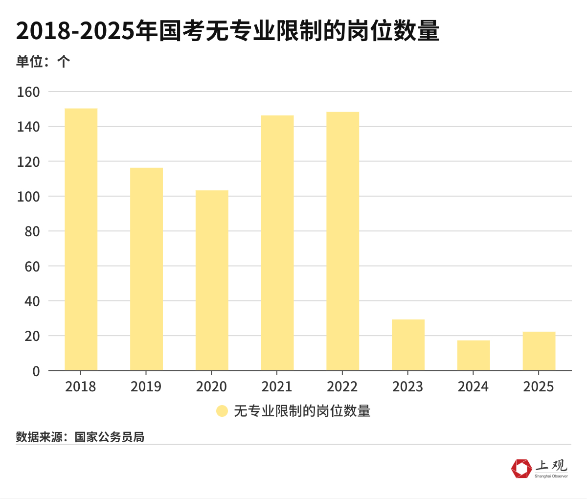 从专业要求来说,今年国考无专业限制的岗位数量比去年多增加了5个,达到22个。主要包含特勤局从事泅渡教育训练、搏击教育训练等特殊专业岗位,前往西部地区和艰苦边远地区从事一线入户调查、数据处理、统计分析、统计研究的岗位,以及在福州海关缉私局综合保障、情报收集岗位,在长江航运公安局从事水上巡逻、治安管理、基础信息采集等工作的岗位。
