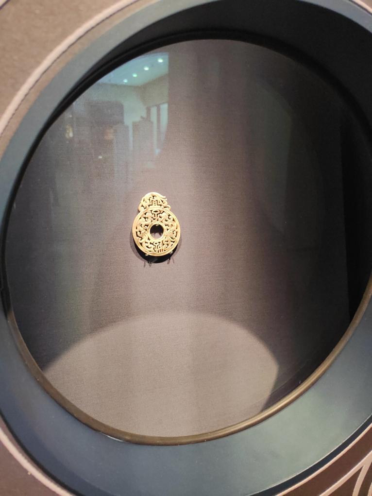 图为“玉魂国魄:宜子孙——汉代玉器集萃”展上展出的带有“宜子孙”的汉代玉璧。新华社记者 冯源 摄