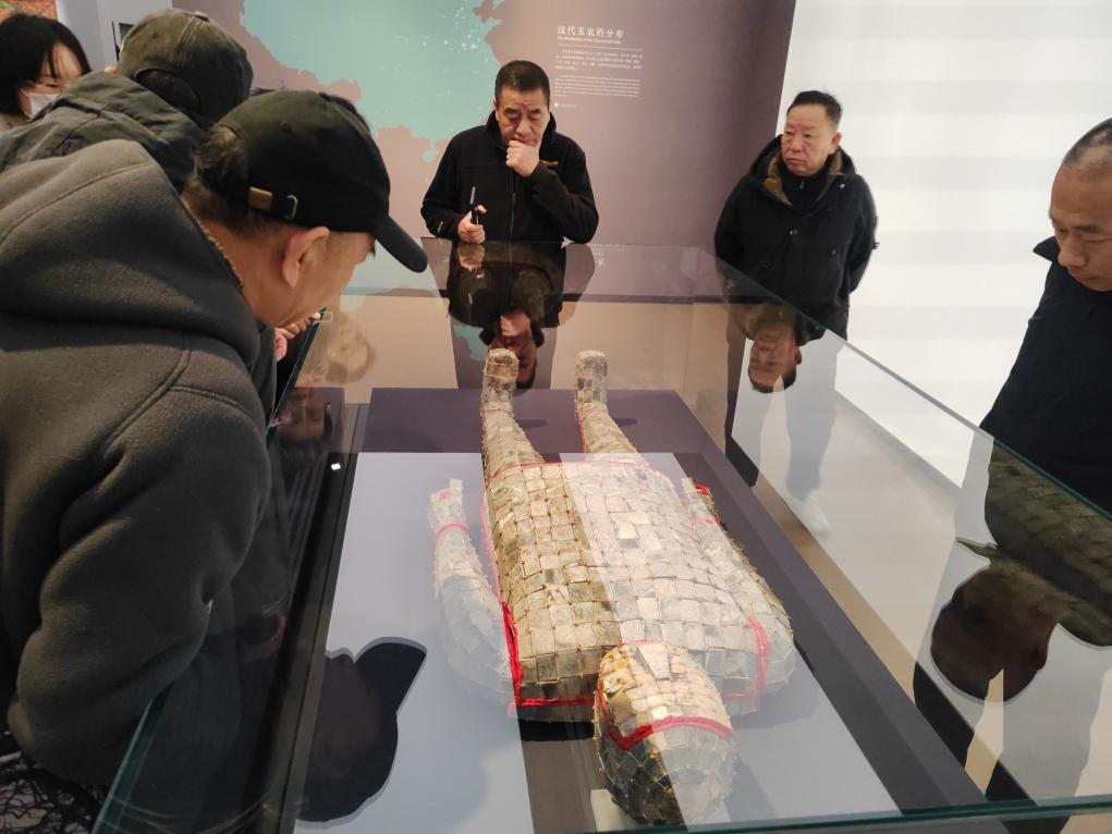 12月19日上午,观众在良渚博物院观赏汉代“金缕玉衣”。新华社记者 冯源 摄