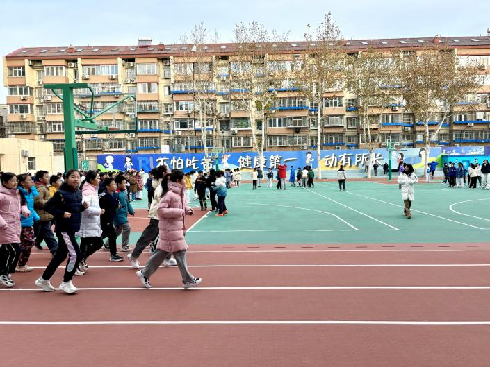 在北京小学,学生们在课间跑步。(受访者供图)