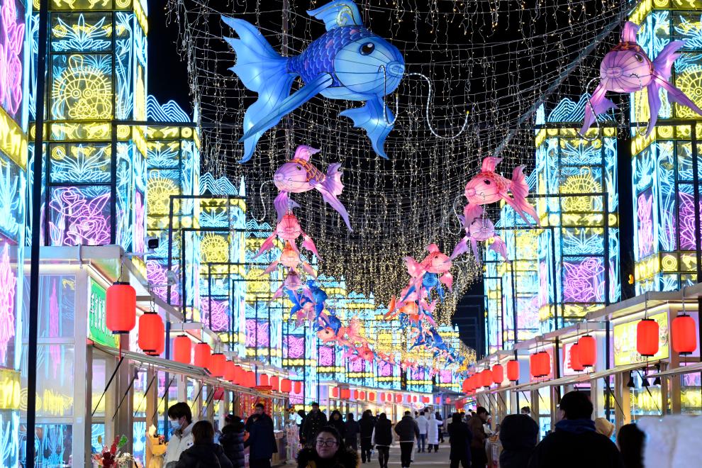 2024年12月20日,游客在银川花博园山海灯会参观游览。新华社记者王鹏摄