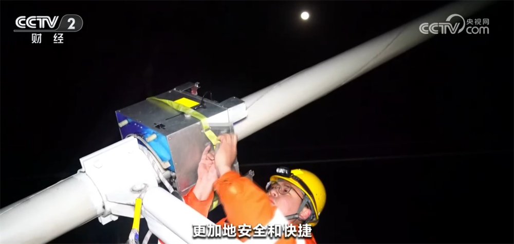 国铁南昌局九江桥工段职工方洋洋称:“这个设备全名叫做桥梁斜拉索智能检测机器人,它可以对斜拉索的安全及健康状态进行全面检测,相较以往人工利用云梯检查更加安全和快捷。”