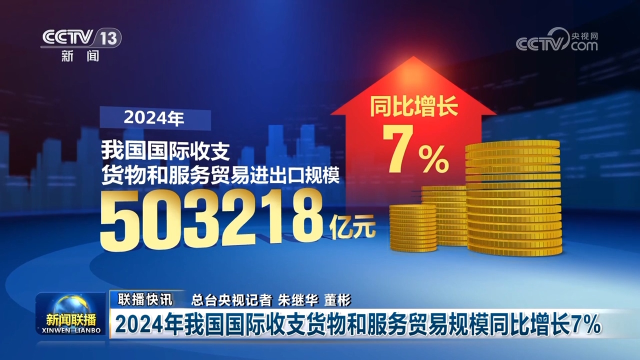 2024年我国国际收支货物和服务贸易规模同比增长7%
