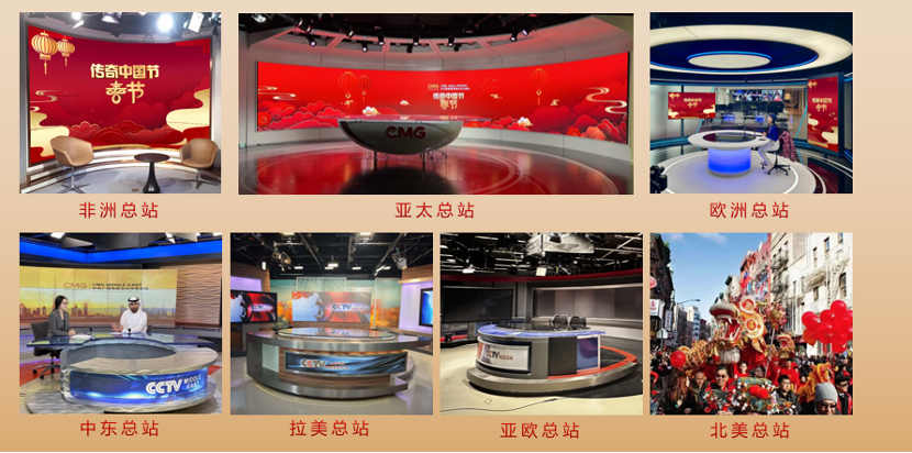 节目设置北京主演播室,总台海外总站非洲、亚太、欧洲、拉美、中东等七大分演播室,直通春晚现场,哈尔滨冰雪大世界分演播室,融媒体演播室等,连线各地新春活动的现场,奔赴全球各地和中国大江南北,挖掘那些承载着深厚文化底蕴的传统新年庆祝活动。