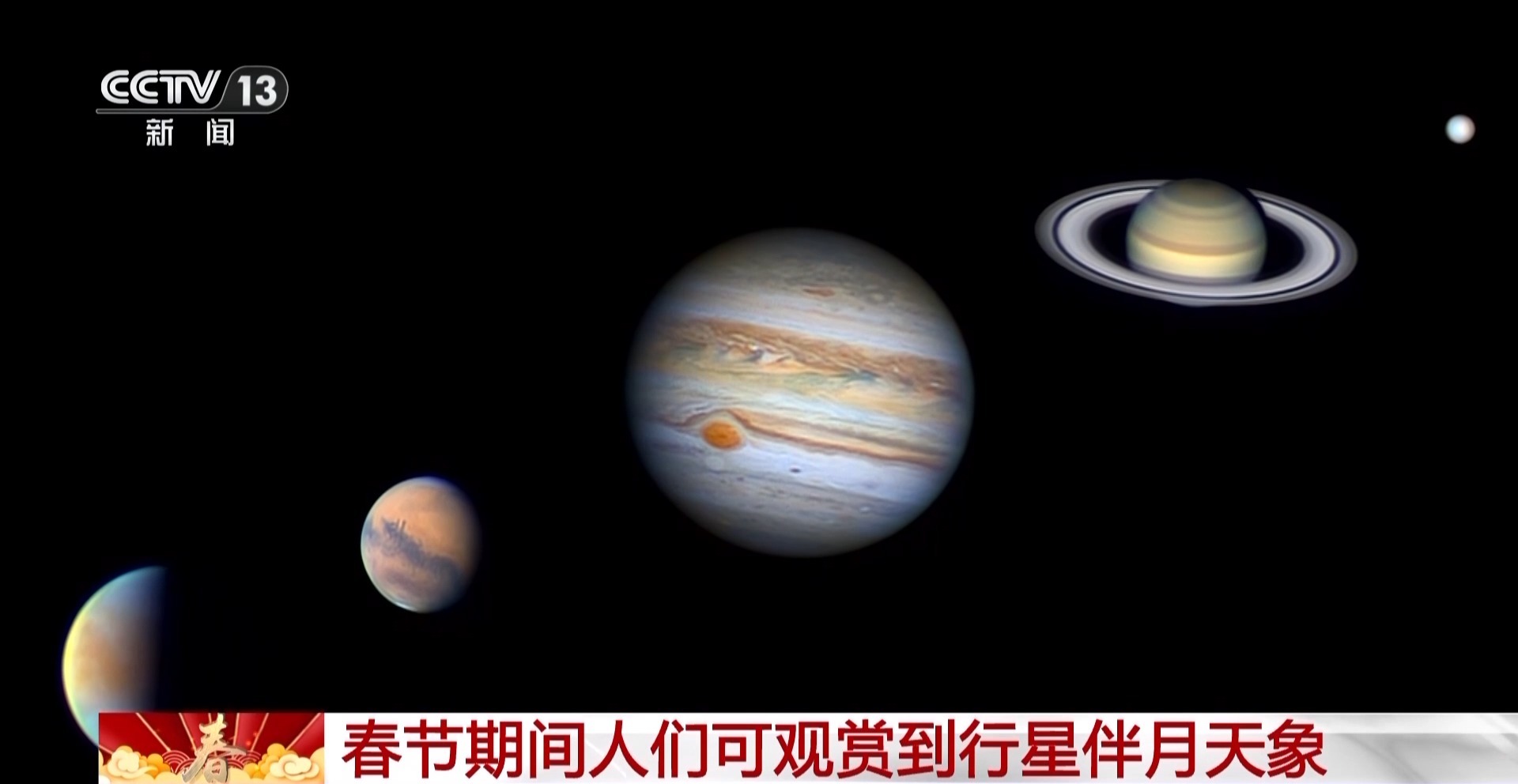 2月1日晚,土星与月亮看上去距离会相对较近,与金星一起在西南方低空上演一场双星伴月。