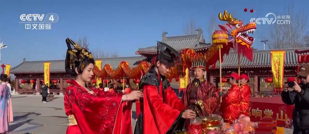在河北邯郸峰峰矿区的响堂山风景区,一场传承千年的献香大会祈福大典,祈愿新的一年风调雨顺、五谷丰登、国泰民安。响堂山风景区还为游客准备了邯郸成语情景剧、梨园春名家戏曲演唱和“让文物回家”石窟艺术展等一系列文化活动,让历史的厚重与新春的活力在这里相互碰撞。