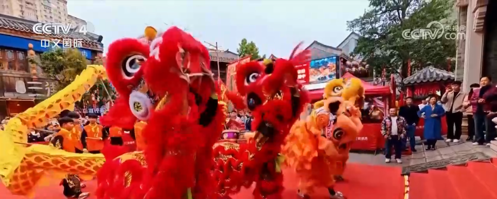 大年初五,中国民间有“迎财神”的风俗,在广西南宁邕州古城·三街两巷历史文化街区的庙会上,醒狮踩着节拍翻腾舞动,为观众送去新年祝福,“五路财神”跟着龙狮队伍一路穿梭游走赠送惊喜“财礼”。