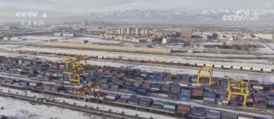 在新疆霍尔果斯铁路口岸,春节里新到的集装箱堆成了小山,这些货物将搭乘中欧班列驶往共建“一带一路”国家。