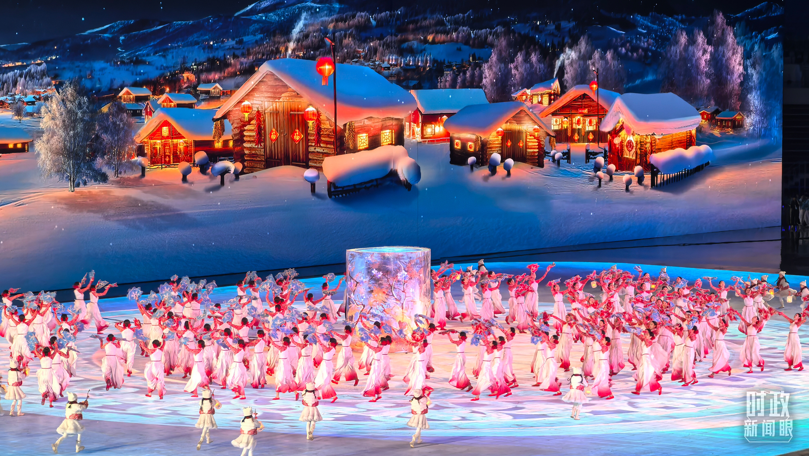 开幕式以“哈尔滨、中国、亚洲”的地域递进层次展开。一盏冰灯映照新春,讲述从启梦、追梦到圆梦的冰雪梦想。从“冰晶蓝”到“中国红”,旋转的“冰凌花”尽显喜迎八方宾朋的热情。