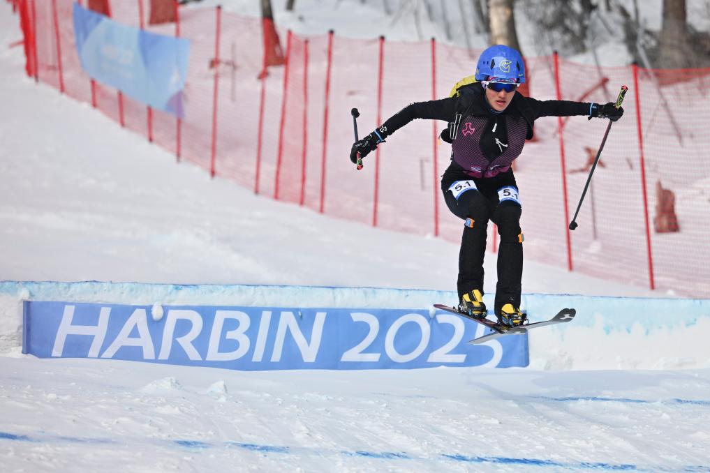 丰坦在哈尔滨亚冬会滑雪登山项目比赛后。新华社记者 王沁鸥 摄