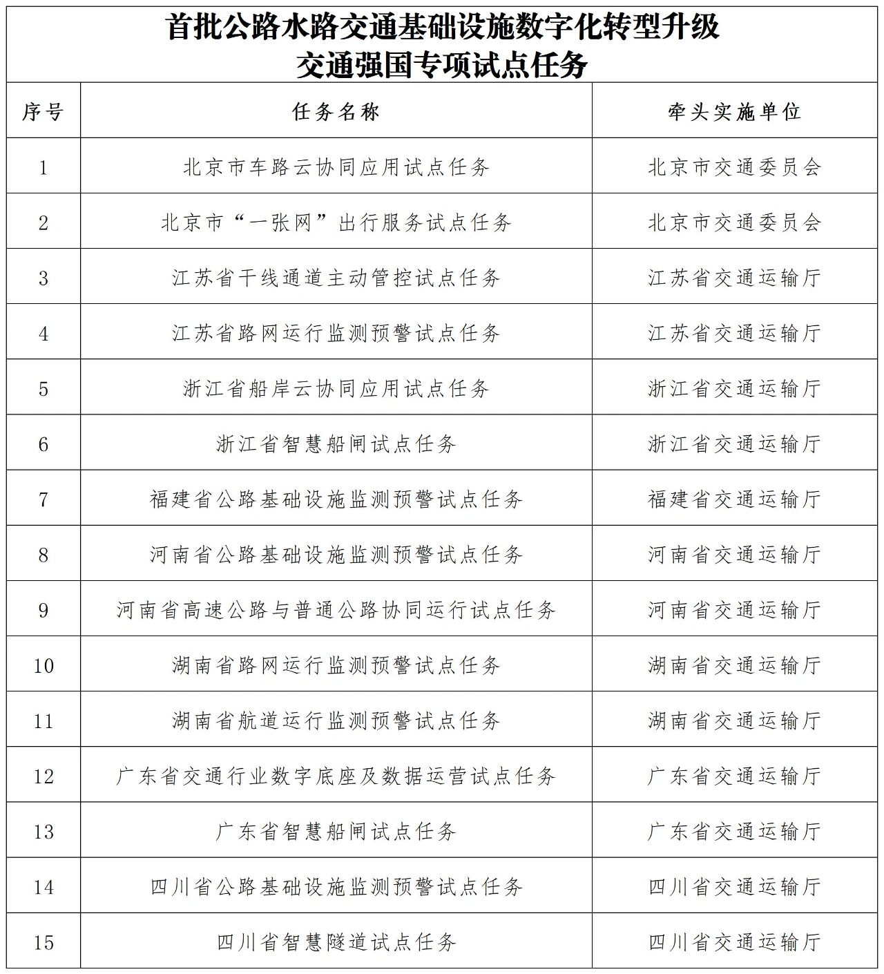 正在阅读:首批公路水路交通基础设施数字化转型升级交通强国专项试点任务名单公布