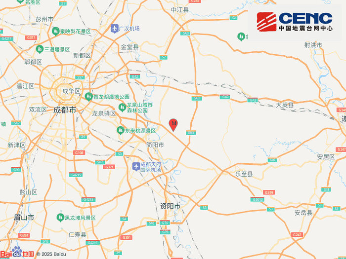 四川成都简阳市发生2.8级地震,震源深度10千米