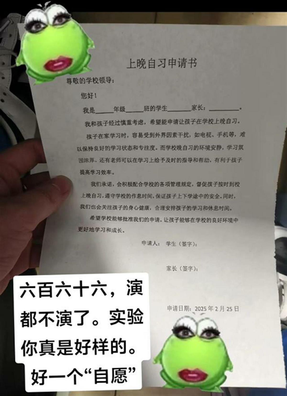 正在阅读:中学违规让学生签“晚自习申请书”?当地教育局:便于统计人数